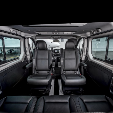 Sièges individuels en cuir pivotants sur rails, liseuses pour tous les passagers, table coulissante, 2 prises USB, prise de courant 220volt.